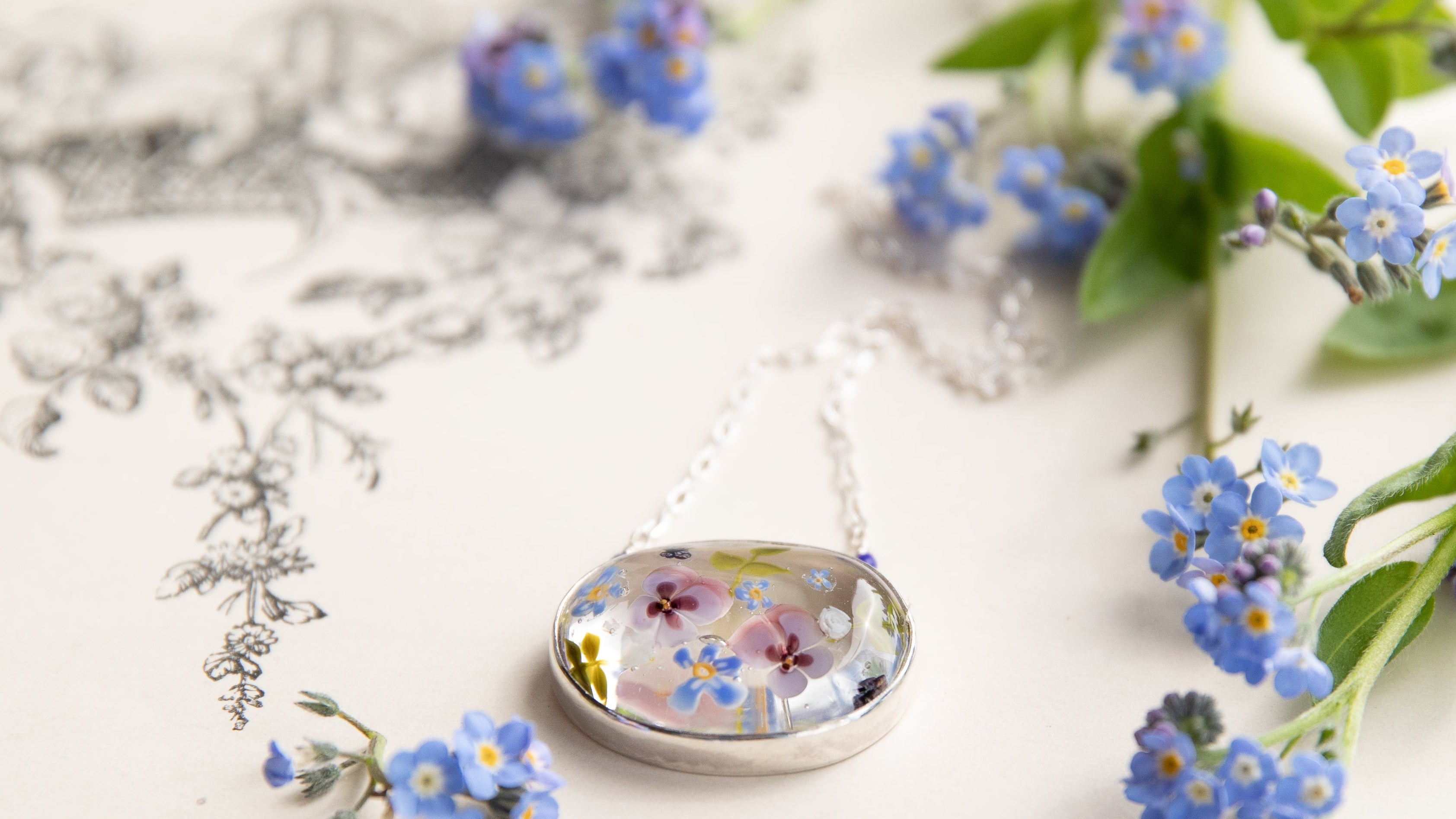 The tiny flowers in the jewellery are not real, they are expertly handcrafted by yours truly, Kathryn Greer.